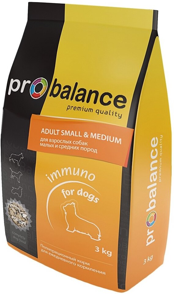 Корм для собак ProBalance Immuno Adult Small&Medium сухой для взрослых собак малых и средних пород, 3 кг