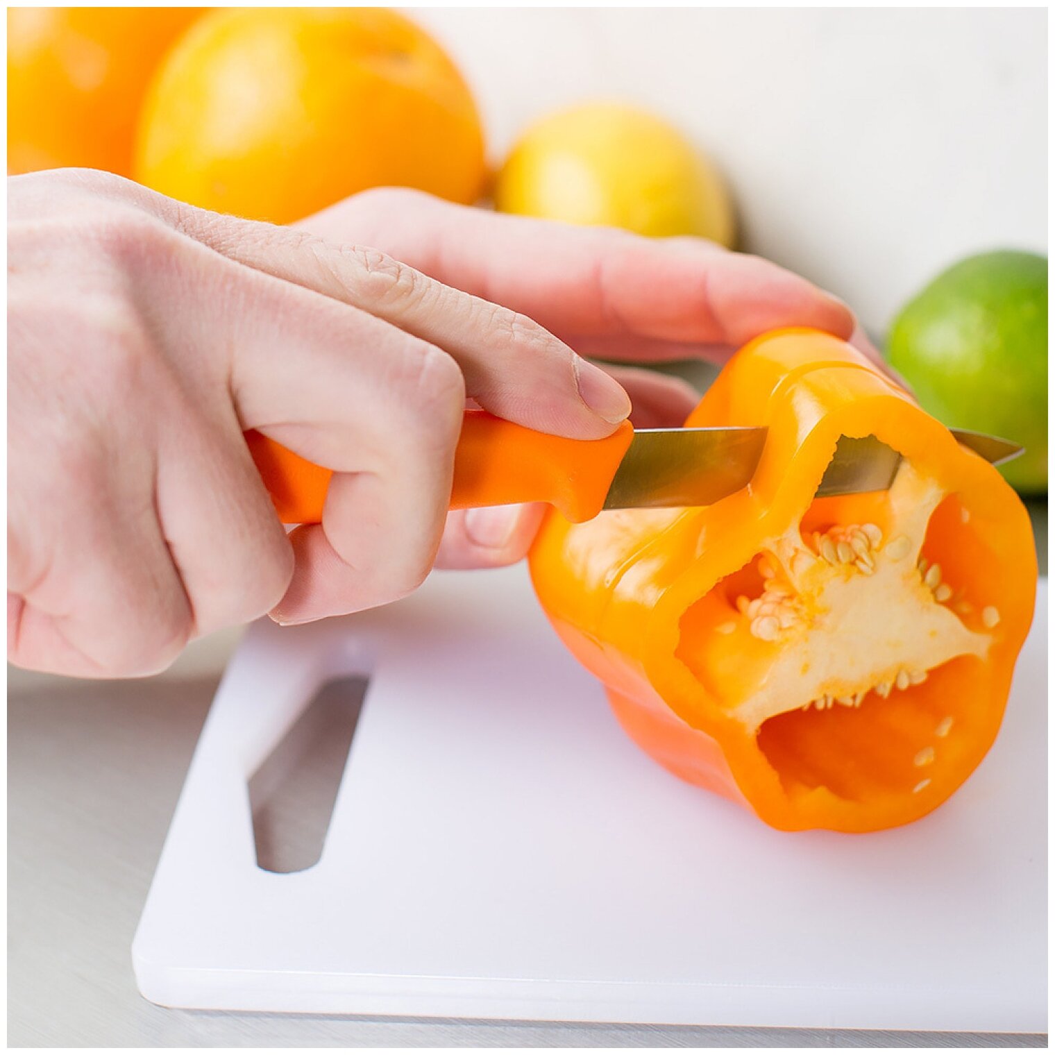 Лучшие цены. Нож Victorinox " SwissClassic" с острым кончиком, для овощей. Он очень удобный и небольшой, идеально подходит для нарезки, измельчения, очистки и декорирования фруктов и овощей. Яркий цвет порадует глаз, а эргономичная рукоять облегчит работу. НОЖ для овощей И фруктов SWISS CLASSIC Нож для овощей и фруктов Swiss Classic будет выделяться на Вашей кухне свежим ярким цветом ручки, а его острое 10-сантиметровое лезвие с заостренным кончиком поможет без труда и быстро нарезать любой фрукт или овощ. Магазины в вашем городе.