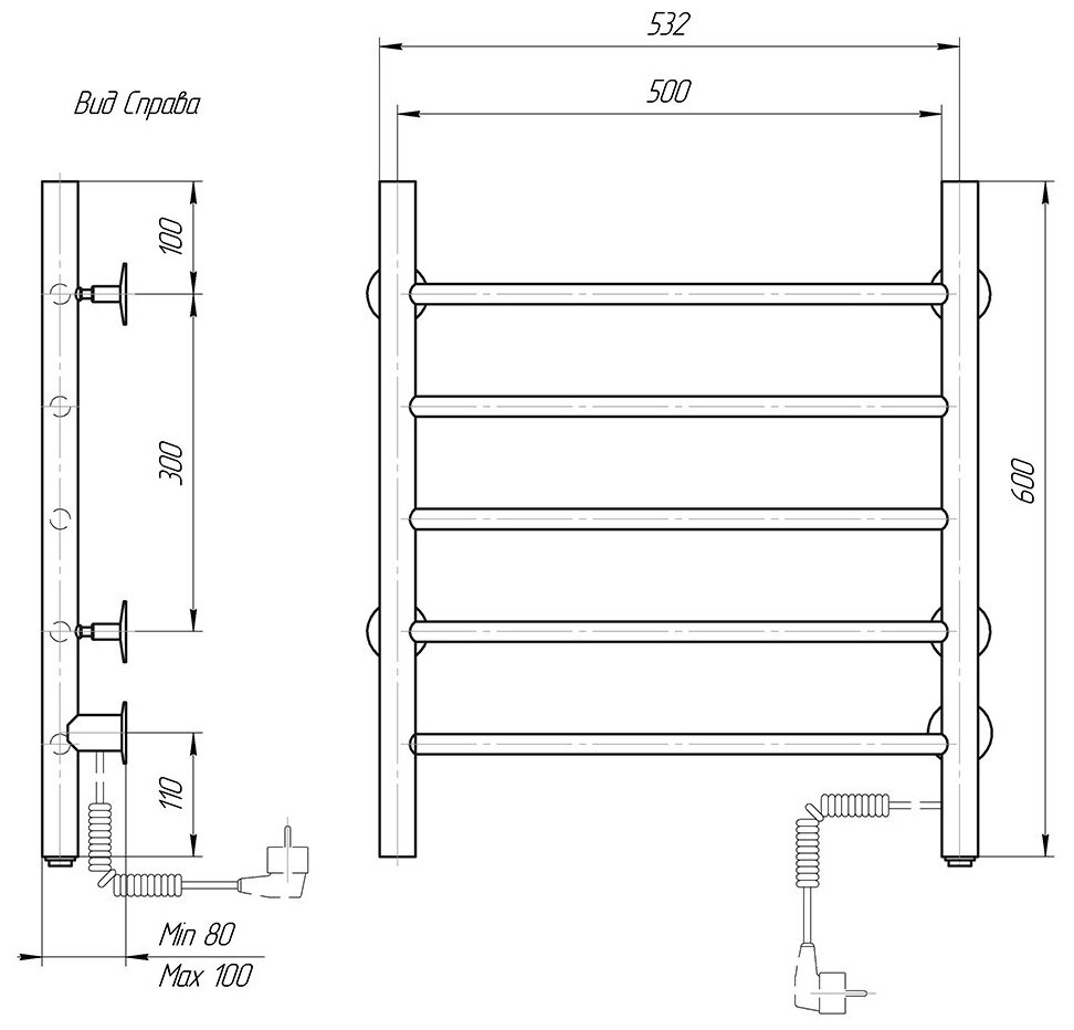 Лучшие цены. Характеристики: Высота: 60 см Межосевое расстояние: 50 см Ширина: 53 см Количество перекладин: 5 Коллекция: Аврора Тип: электрический Форма: лесенка Направление подключения: нижнее; справа С боковым подключением: нет Глубина: 10 см Мощность: 52 Вт Поворотный: нет Полка в комплекте: нет Материал: нержавеющая сталь Подключение: электропровод с вилкой Длина провода: 1.8 м Монтаж: подвесной Цвет: хром Гарантия на полотенцесушитель: 24 мес Страна происхождения бренда: Россия Теплоноситель: греющий кабель Площадь. Магазины в вашем городе.