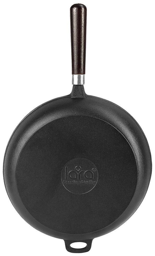 LR01-89 Сковорода LARA (черн) чугун 28,5х6 см, толщ. 4 мм, индукц, берёзовая ручка, прихватка-упор