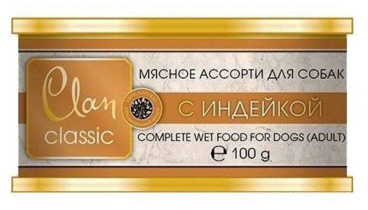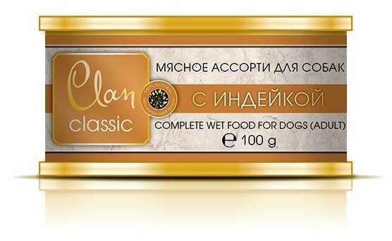 CLAN CLASSIC мясное ассорти для взрослых собак с индейкой банка NEW 340 гр х 6 шт