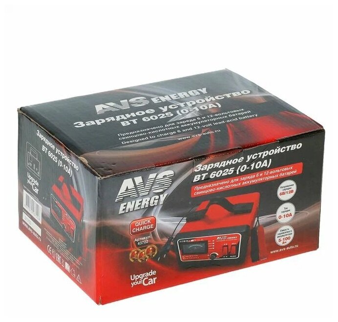 Лучшие цены. С наступлением холодов одна из типичных проблем, скоторой часто сталкиваются автолюбители это разряженный аккумулятор автомобиля. После нескольких летэксплуатации автомобиля мощности генератора не хватает для зарядки аккумулятора, в результате, автомобильплохо заводится. Решить эту проблему Вам помогут автоматические зарядные устройства AVS. Характеристики: Напряжение зарядки: 6/12В Максимальный ток: 10A Напряжение питания: 50Гц, 230В Мощность: 110Вт Емкость заряжаемого аккумулятора: 5 – 100 Ач Тип. Магазины в вашем городе.