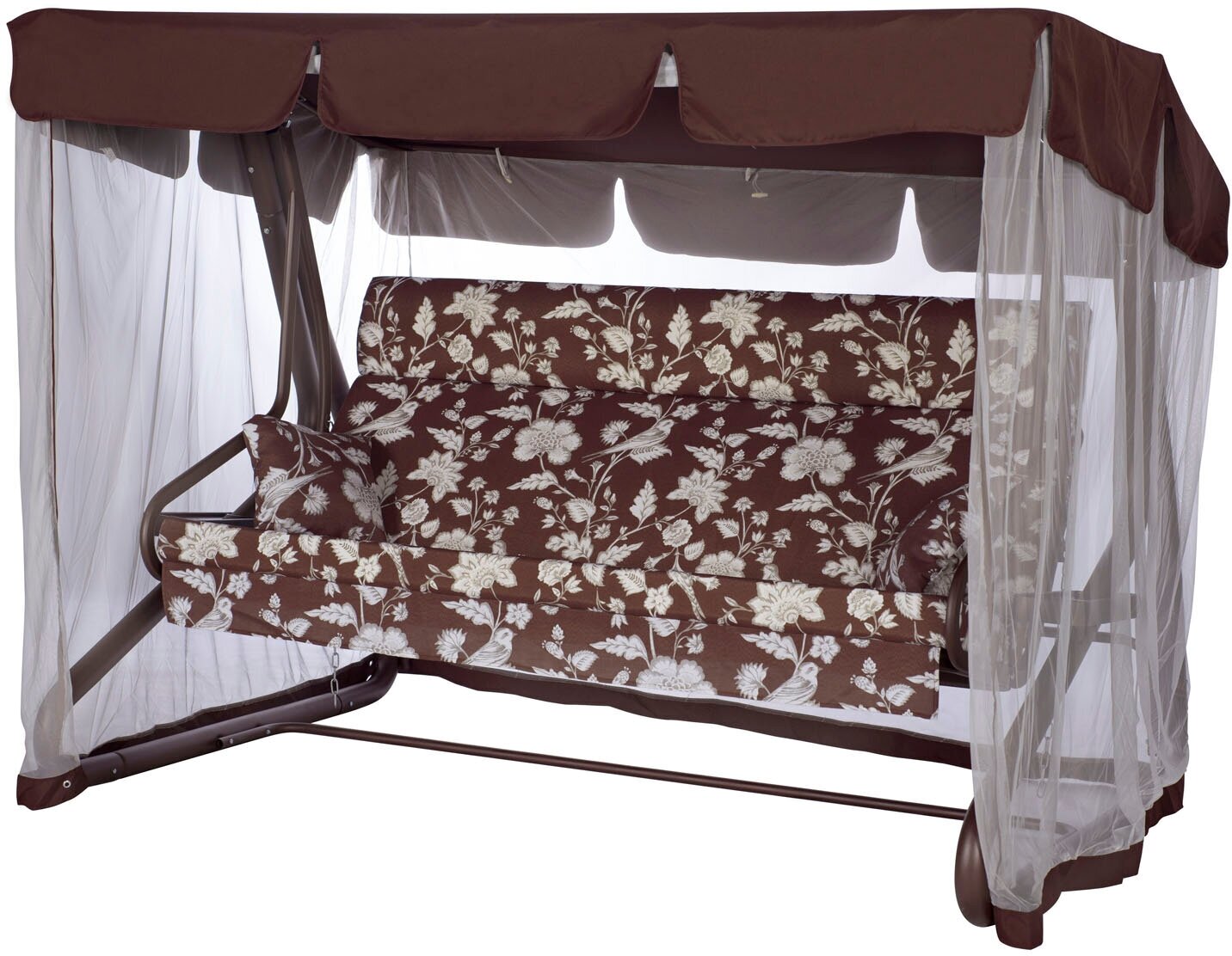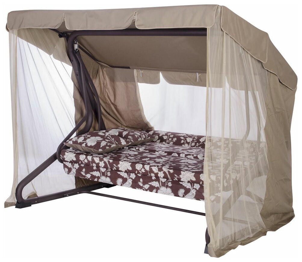 Садовые качели 4-местные с москитной сеткой Удачная мебель Валенсия шоколад