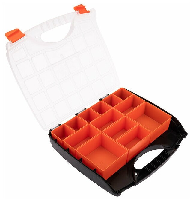 Лучшие цены. Ящик пластиковый для инструмента PROconnect 325х280х60 мм С контейнерами для мелочей, предназначен для хранения различных мелочей, замок плотно фиксирует крышку, что обеспечивает сохранность вещей при транспортировке, прозрачная крышка создет дополнительные удобства при хранении, компактен, эргономичен, функционален. Магазины в вашем городе.