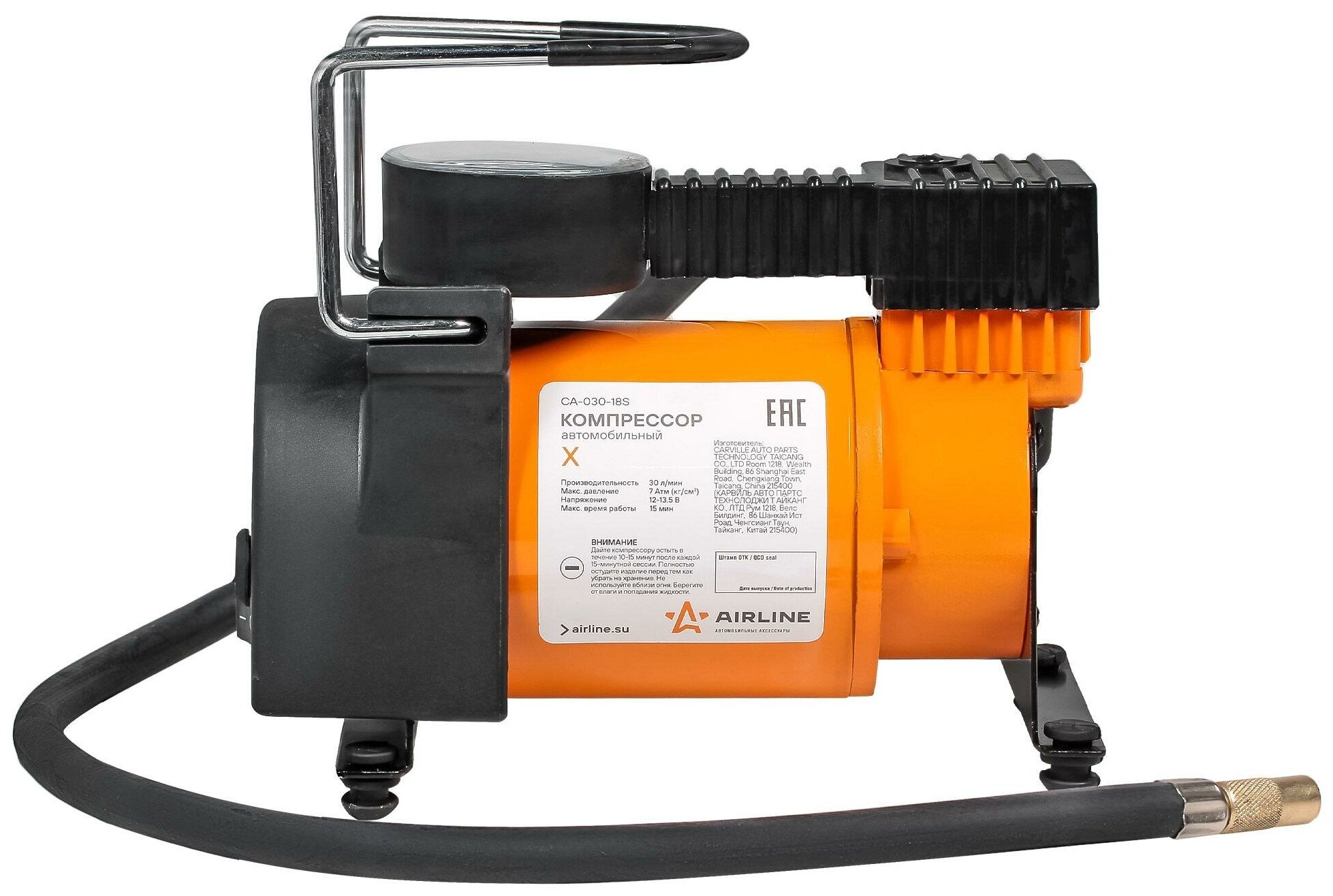 Лучшие цены. Артикул: CA-030-18S, аналог TORNADO АС-580 Мощность: 196вт Напряжение: 12 – 13.5 в Производительность: 30 л/мин (1,8 куб. м/час) Максимальное давление: 7 атм (кг/см2) (7,1 бар) Максимальный ток: 14 а Время непрерывной работы: до 15 мин Уровень шума: 69 дб Манометр: встроенный Длина кабеля питания: 3 м Длина шланга: 0,65 м Время накачивания колеса R14 от 0 до 2 Атм Компрессор для шин Airline X CA-030-18S прослужит вам долгие годы: он оборудован надежным механизмом, а металлический корпус устройства имеет. Магазины в вашем городе.