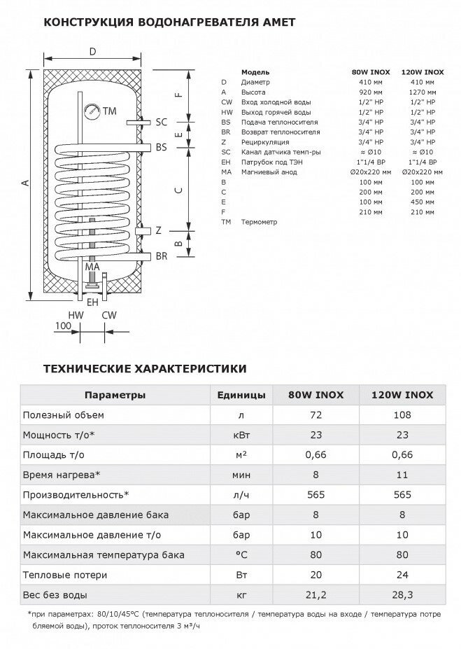 Termica AMET 80W INOX настенный водонагреватель косвенного нагрева 85111080