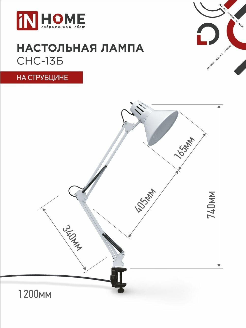 Лампа офисная IN HOME СНС-13Б, E27, 60 Вт, белый 4690612012728