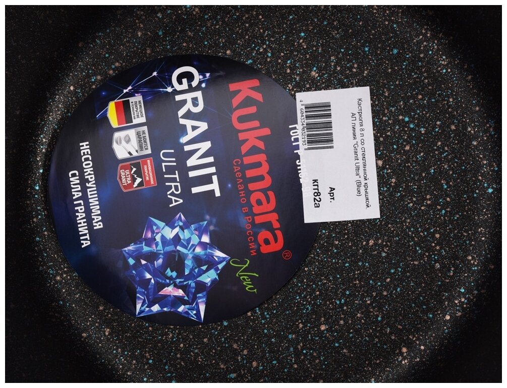 АП Кастрюля 6л со стекл. крышкой, АП линия "Granit ultra" (blue) "Kukmara" кгг62а