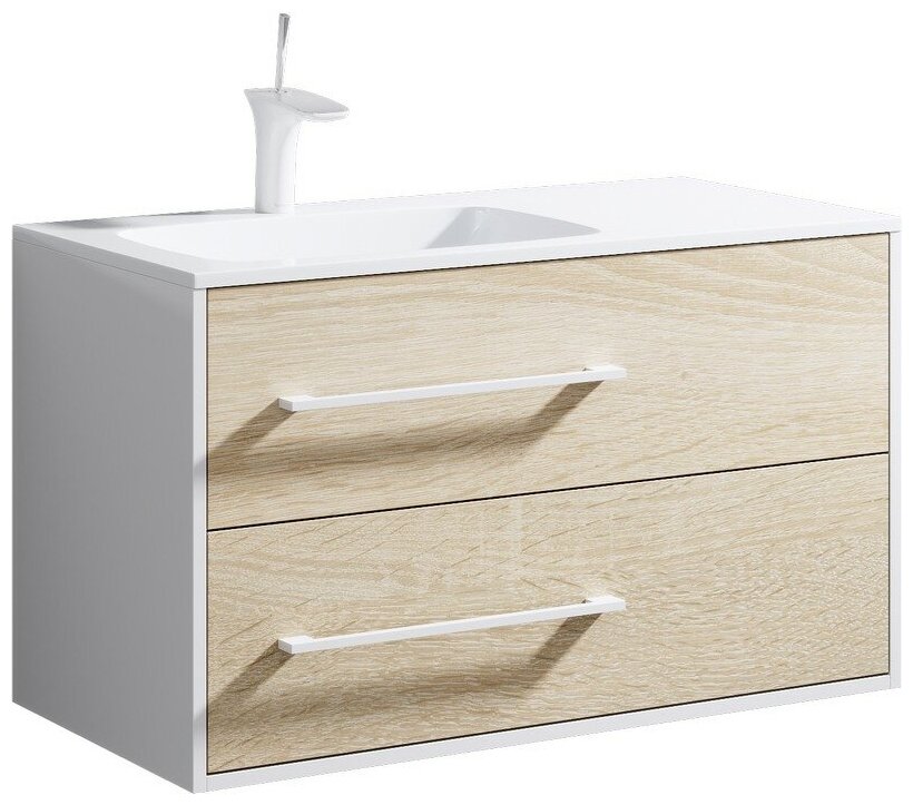 Тумба под умывальник Aqwella Miami 90 подвесная левая, белый/дуб Mai.01.09/L