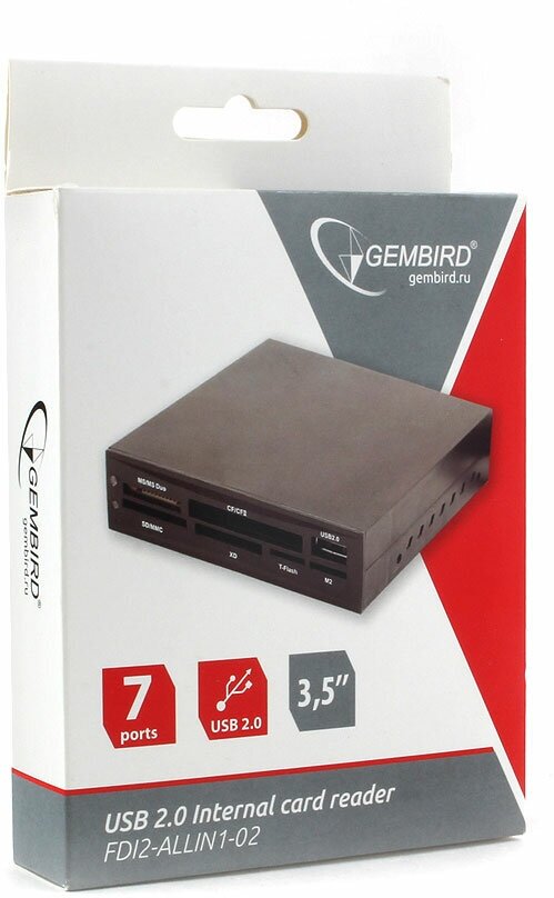 Gembird Картридер внутренний 3.5 черный, для карт памяти, коробка FDI2-ALLIN1-02-B