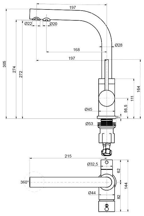 Лучшие цены. Смеситель для кухни ESSEN Es213011. Изготовлен из высококачественной латуни, которая отвечает высочайшим европейским стандартам качества, не содержит свинца, не разрушается со временем и безопасна для здоровья. Излив, способный на вращение 360 градусов, обеспечивает удобство использования. Конструктивная технология Trinkwasser предусматривает поступление фильтрованной воды, которая не смешивается с водопроводной. Фильтрованная вода подается через отдельные трубку и аэратор. Магазины в вашем городе.