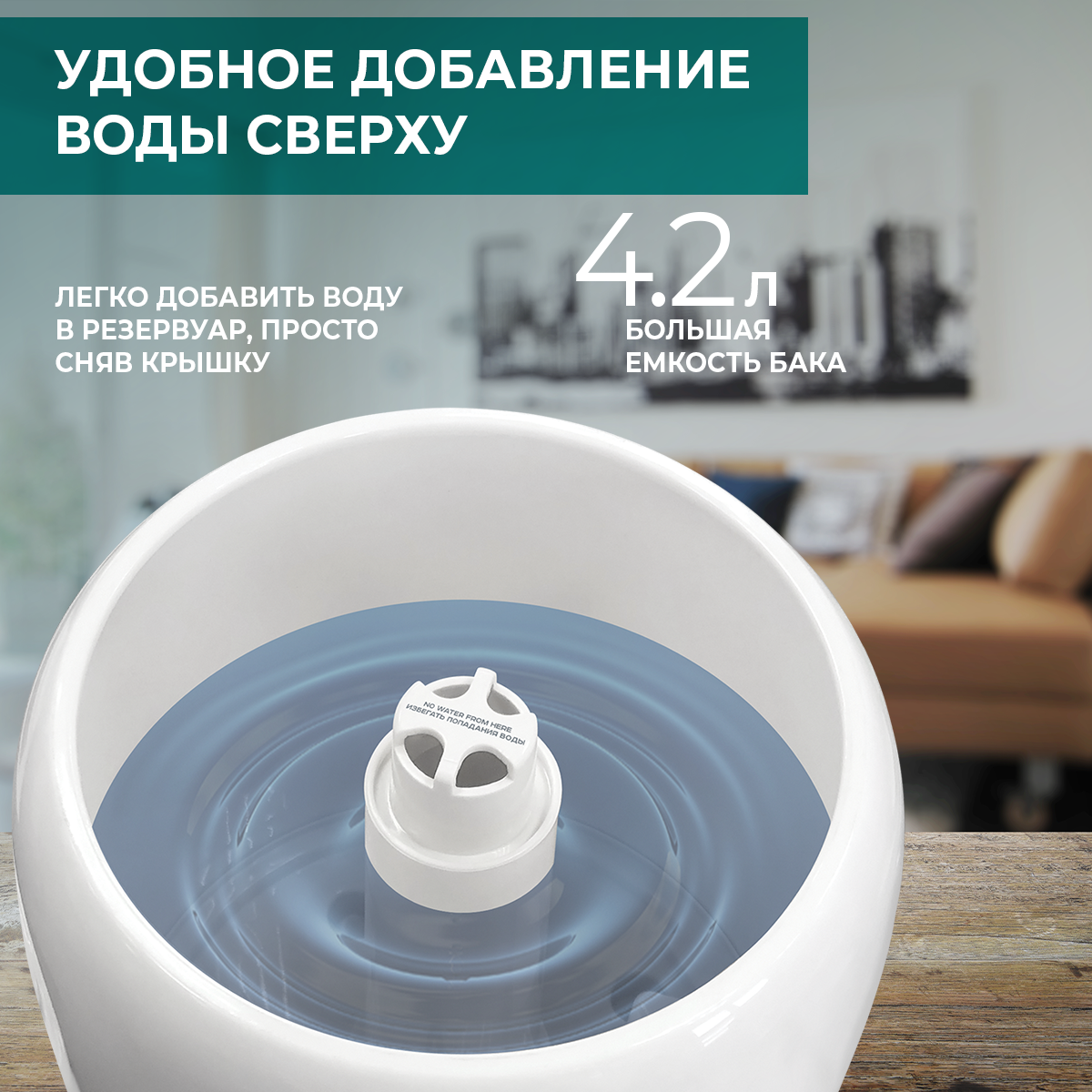| Функции | регулятор влажностиароматизаторотключение при отсутствии водывращение испарителяверхний долив воды |