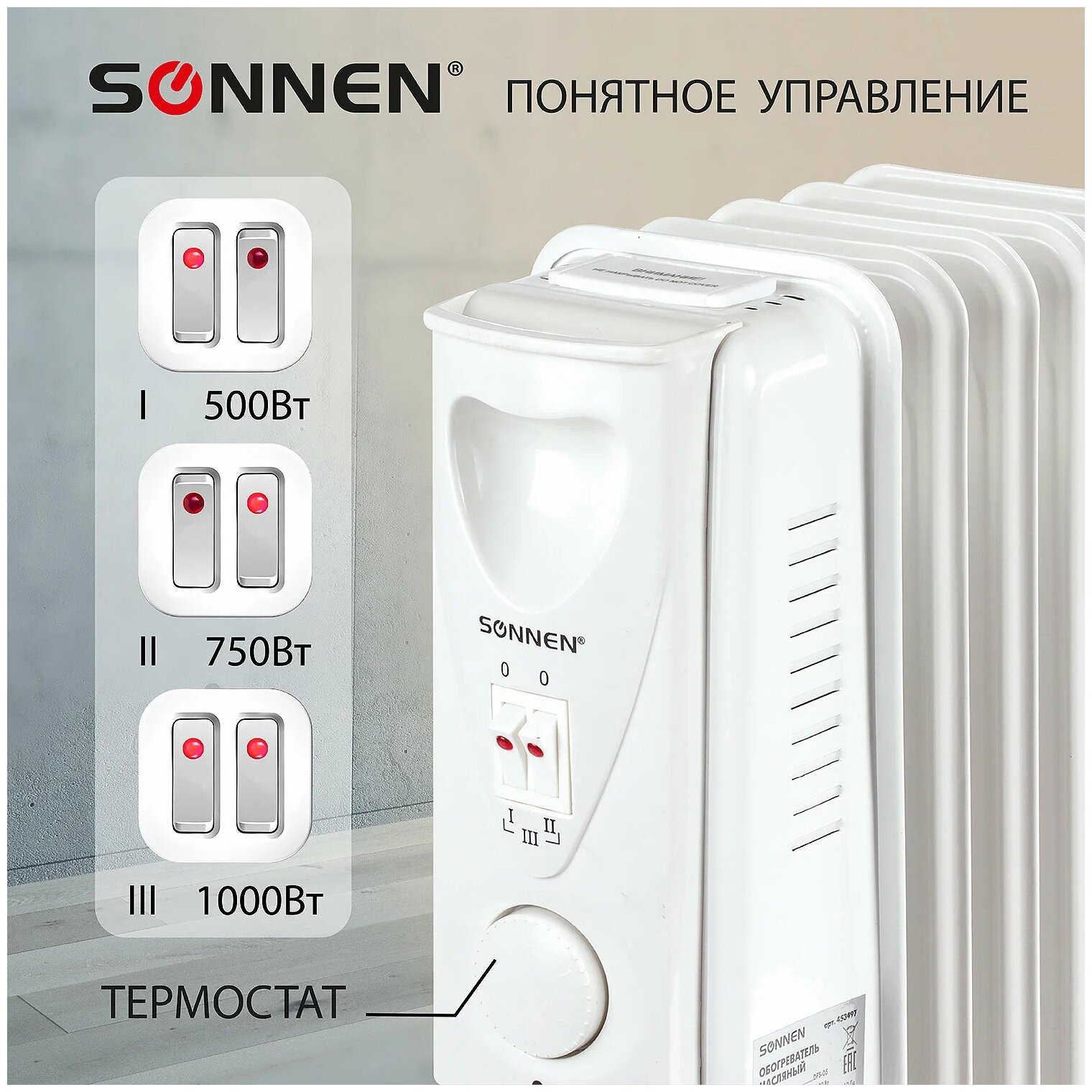 Обогреватель масляный SONNEN DFS-05, 1000Вт, 5 секций, белый, 453497