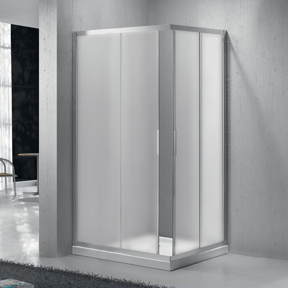 Лучшие цены. Монтаж: пристенный в угол Возможная установка: на поддон, на пол Высота: 1900 мм Форма: прямоугольная Ориентация: универсальная Конструкция двери: раздвижная Исполнение полотна двери: прозрачное (C), текстурированное Chinchilla (Ch), рифленое PUNTO (P) Количество секций двери: 2 Толщина полотна двери: 5 мм Цвет профиля: хром Материал полотна двери: закаленное стекло, стандарт EN12150-1:2000 Материал профиля: анодированный алюминий, стандарт DIN17611 2007 Регулировка ширины: предусмотрена за счет боковых. Магазины в вашем городе.