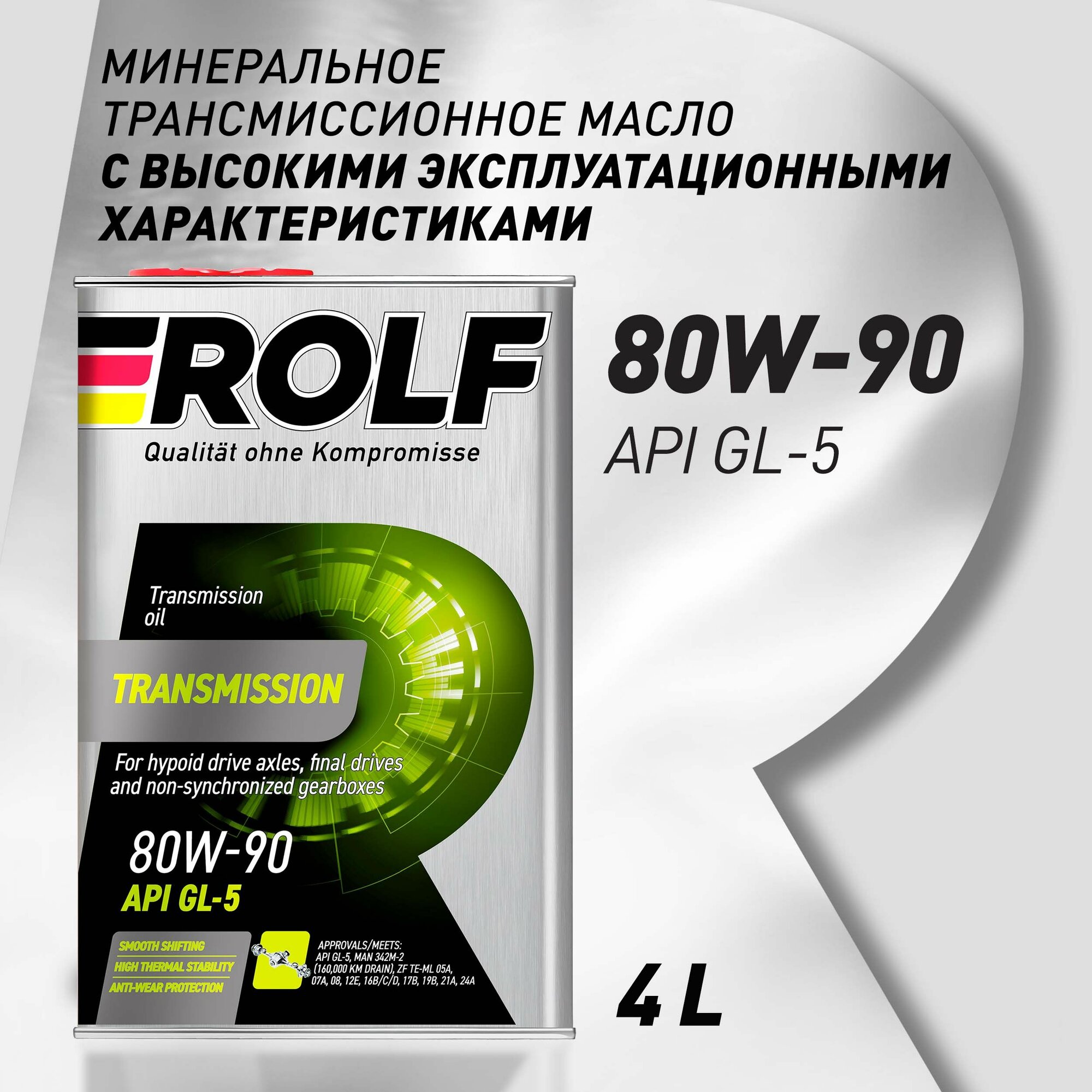 Трансмиссионное масло ROLF Transmission SAE 80W-90, API GL-5, Минеральное 4 л