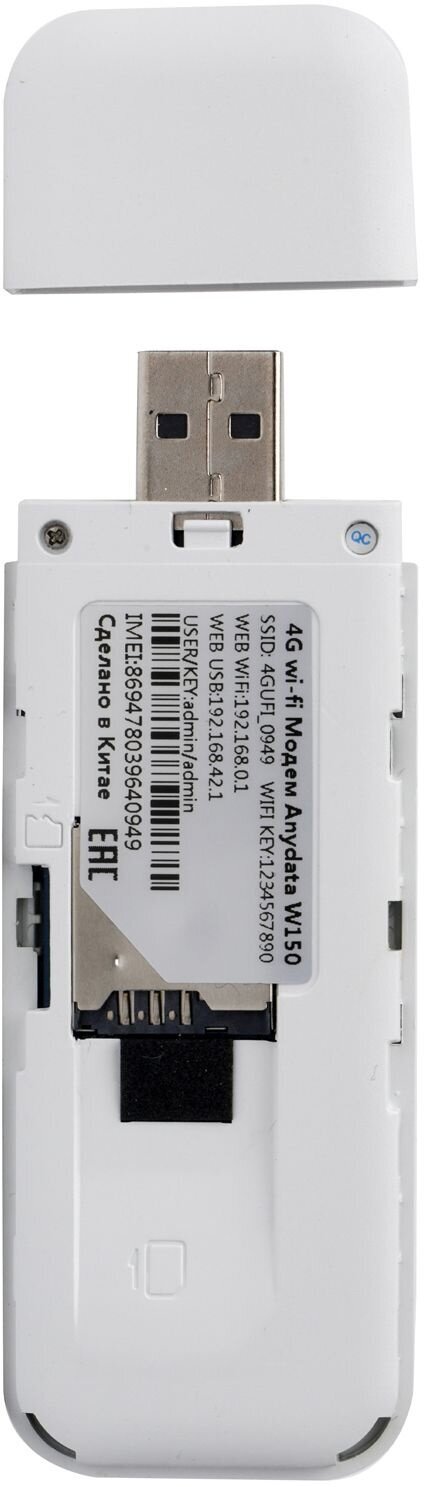 Лучшие цены. 4G LTE модем Anydata W150 LTE представляет собой компактное решение, благодаря которому вы легко сможете пользоваться сетевыми возможностями вашего устройства где бы то ни было. Данная модель предназначена для использования вместе с SIM-картами различных операторов и подключается к оборудованию при помощи внешнего разъема USB. Помимо этого модем может использоваться в качестве точки доступа Wi-Fi со скоростью передачи данных до 150 Мбит/с. Магазины в вашем городе.