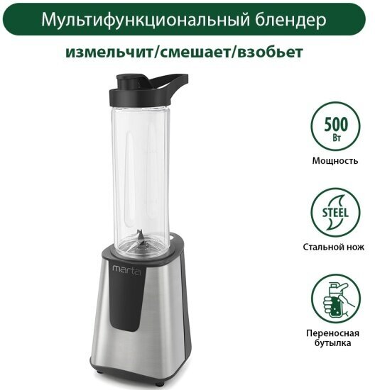 Блендер Marta MT-1567 стационарный Ченый жемчуг 500W лезвие нержавейка переносная бутылка 600мл