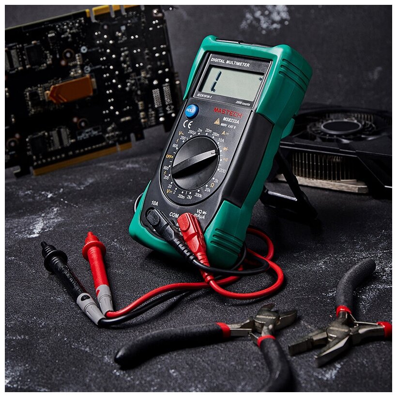 Лучшие цены. Портативный цифровой мультиметр MASTECH MS8233A обеспечит точное измерение показаний, связанных с электричеством. Прибор способен снимать показания тока, напряжения, сопротивления, а кроме того совершать прозвонку цепи. Все эти измерения производятся с помощью удобного переключателя режимов. Все данные выводятся на функциональный дисплей. А с функцией удержания показаний нужное значение будет всегда перед глазами. Магазины в вашем городе.