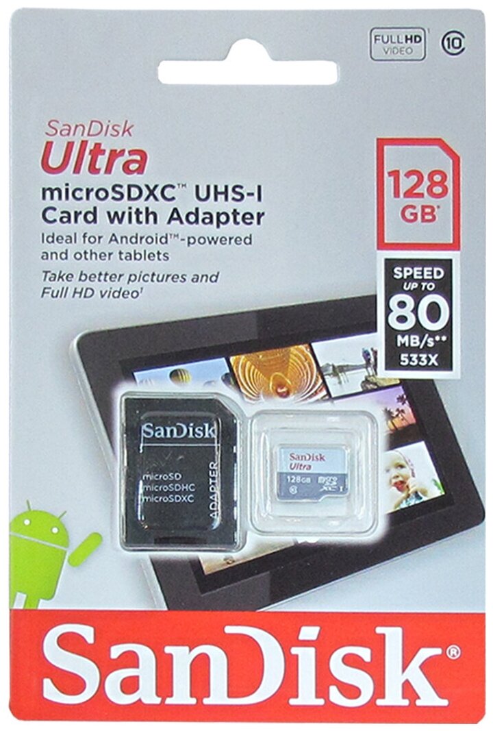 Карта памяти Карта памяти SanDisk Ultra SDXC 128GB Cl.10 UHS-I чтение: 100mb/s запись:10mb/s