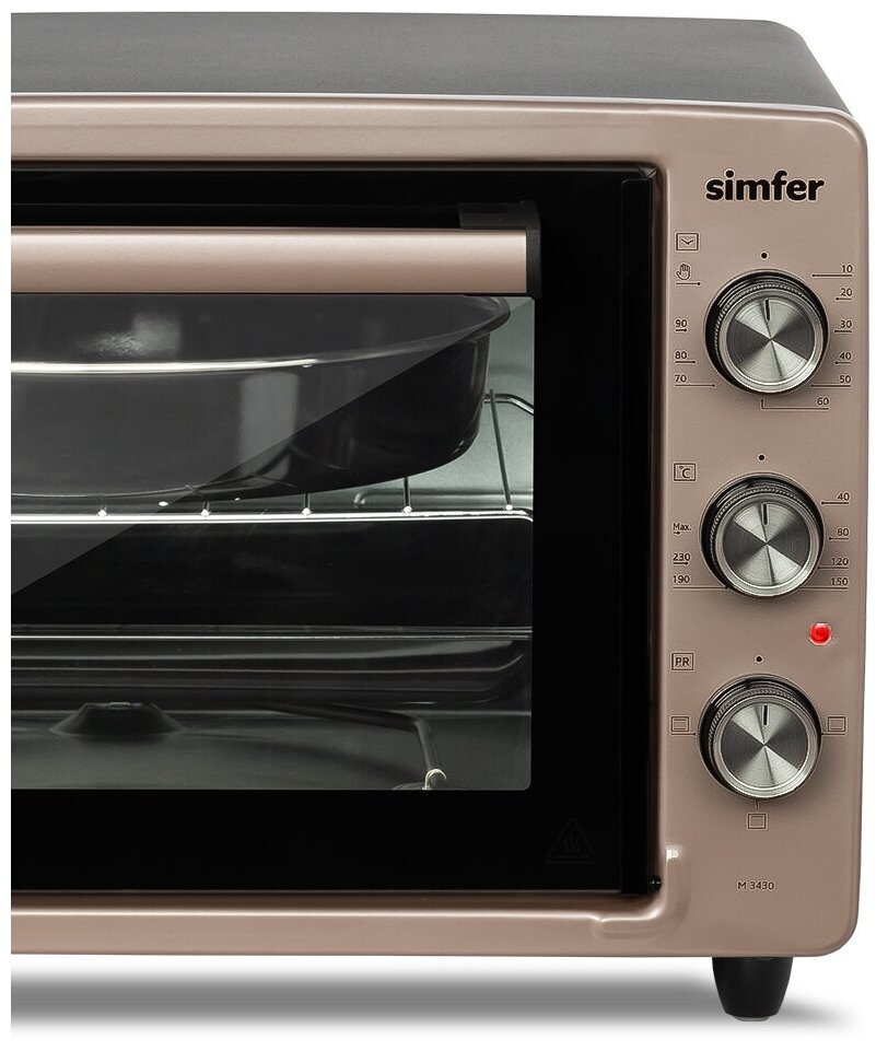 Лучшие цены. Настольная электродуховка Simfer M3430 входит в модельную линейку ALBENI Comfort, разработанную и выпускаемую известным производителем из Турции. Мини-печь является классическим ростером, так как имеет компактные габариты при серьезном наборе функциональных возможностей в плане приготовления или подогревания пищи. С помощью настольной духовки одинаково быстро и качественно готовятся блюда из мяса, рыбы, овощей или выпечка. Магазины в вашем городе.
