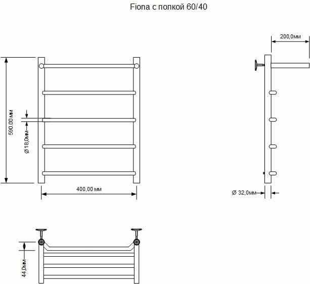 Полотенцесушитель водяной Aquanet Fiona с полкой 600x400, хром