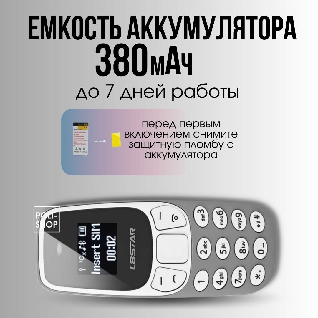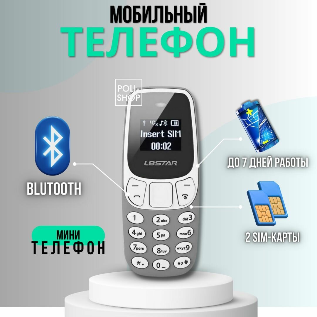 Мобильные телефоны Карманный мини-телефон/ модный телефон /Мобильный телефон L8 STAR Мини/ BM10 с двумя сим картами Серый