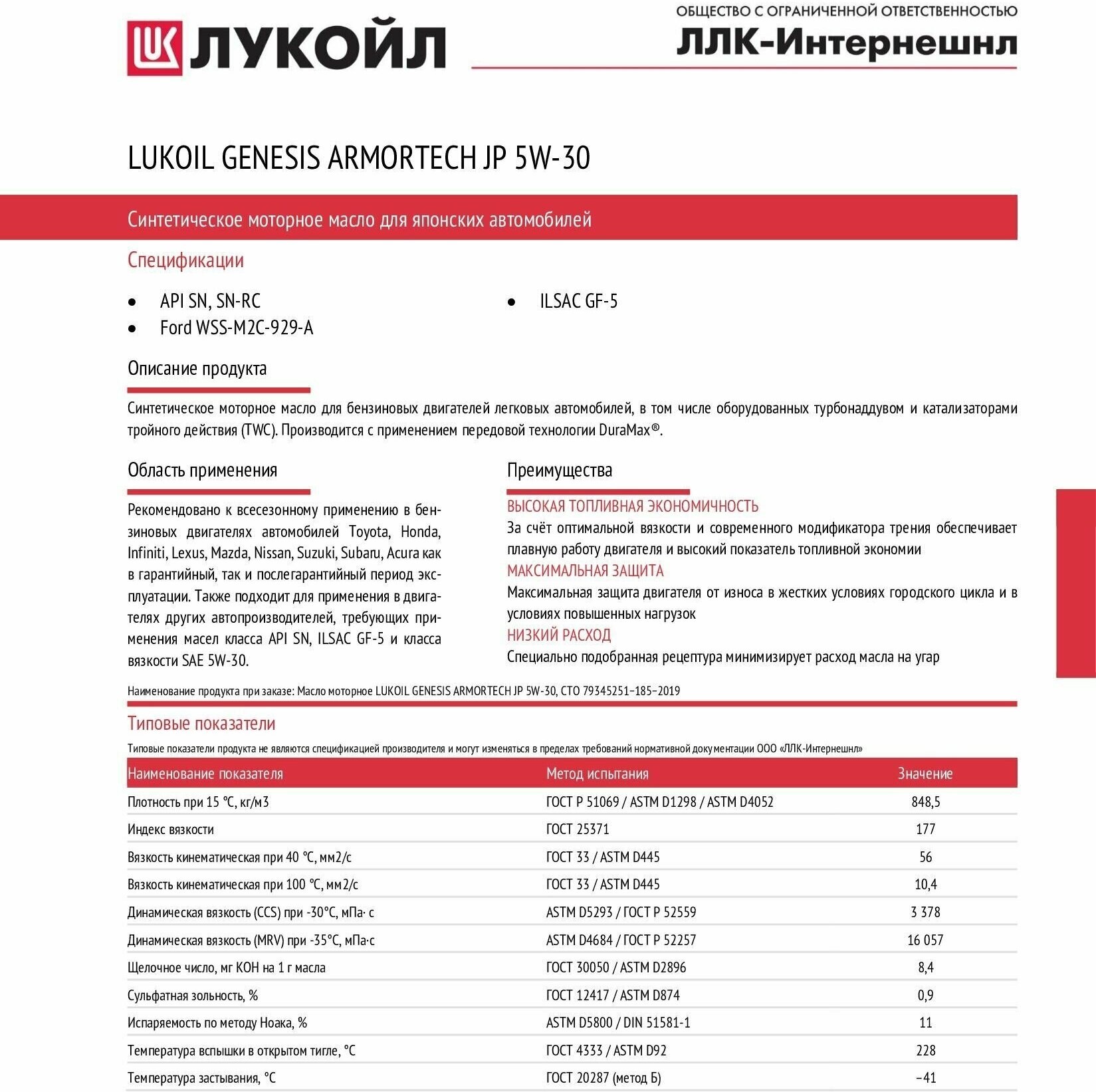 Масло Лукойл 5W30 Genesis Armortech Jp Синтетика 4Л 3149902