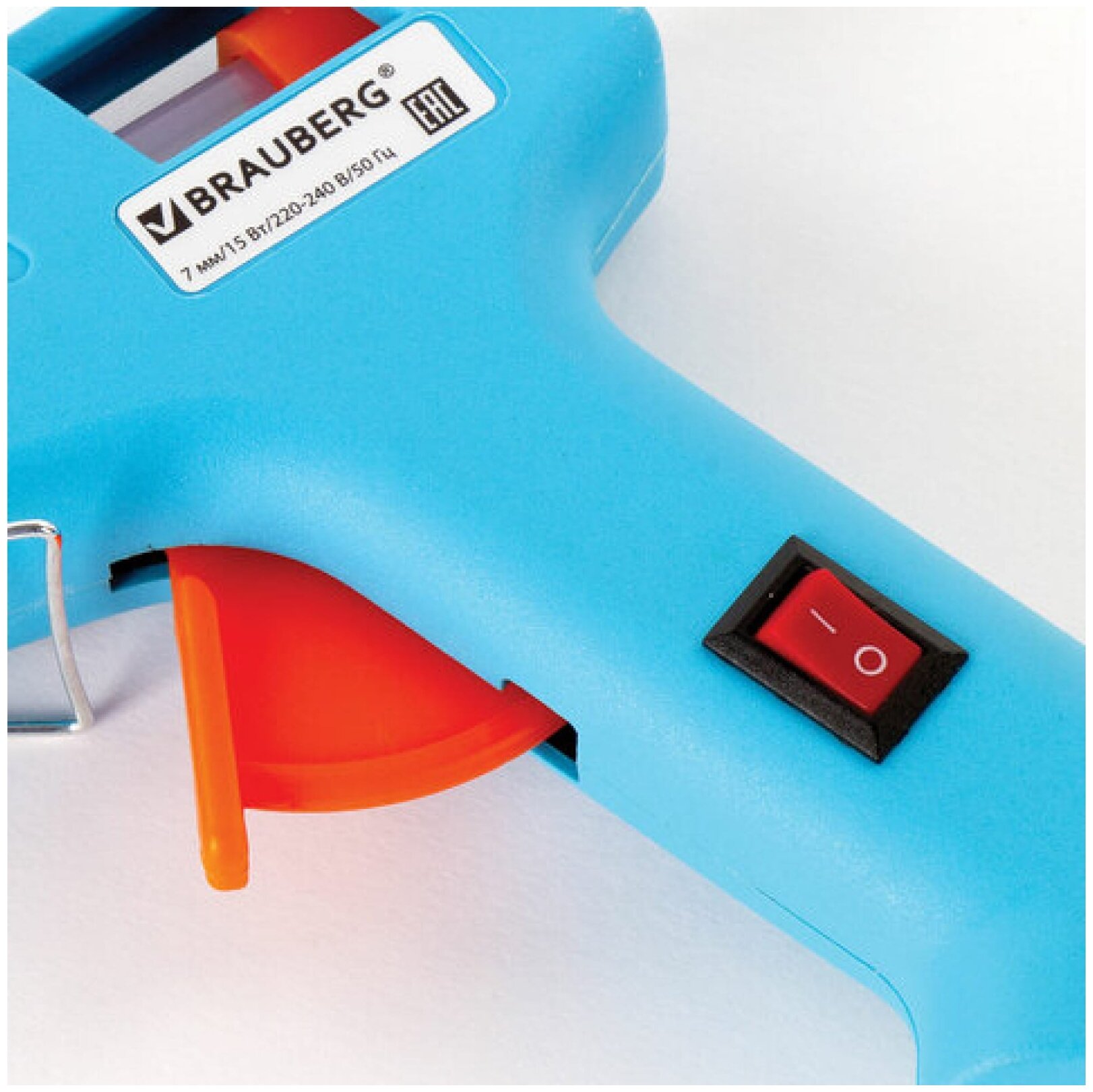 Клеевой пистолет BRAUBERG 671052, 15 Вт голубой