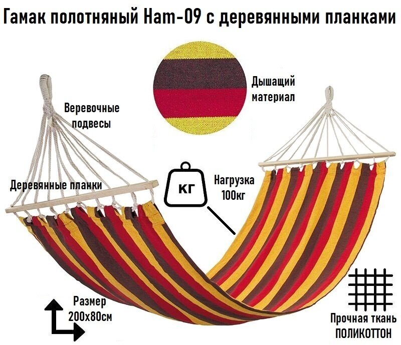 Лучшие цены. Гамак поможет Вам создать соответствующее настроение, расслабиться и забыть о повседневных заботах. В гамаке можно и почитать книгу, и вздремнуть, и просто позагорать. Гамак Ham-09 с деревянной планкой предназначен для сидения, лежания и качения. Идеально подходит для загородного отдыха. Рекомендации по установке: гамак можно подвешивать на крючки в стенах, стволы деревьев, столбы и специальную подставку. Крючки, деревья, столбы и подставки должны быть прочны, чтобы выдержать достаточный вес. Важно. Магазины в вашем городе.