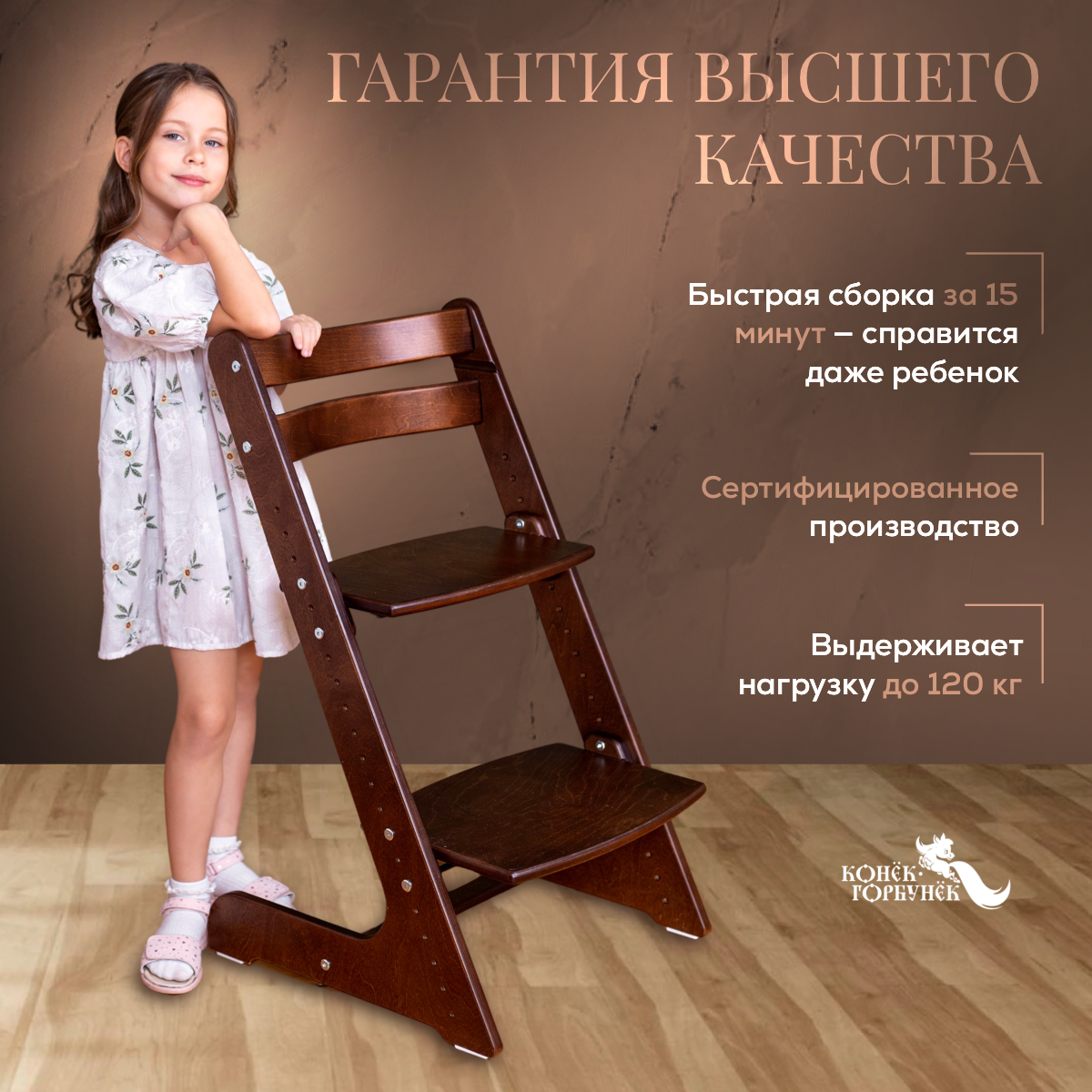 Детский растущий регулируемый стул «Конек Горбунек» Комфорт, цвет «Венге»
