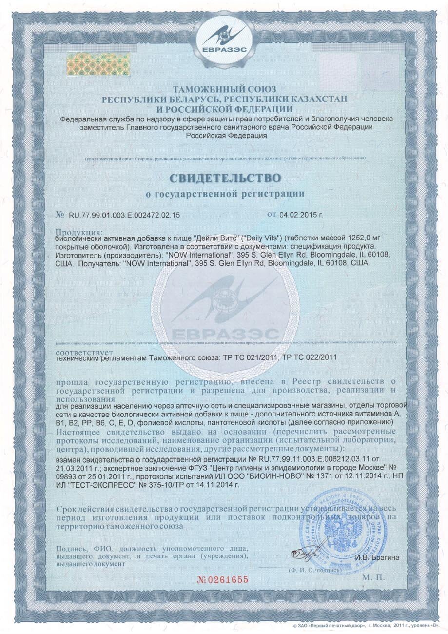 Дейли Витс Now/Нау таблетки 1252мг 100шт 2 321 ₽ Подробнее