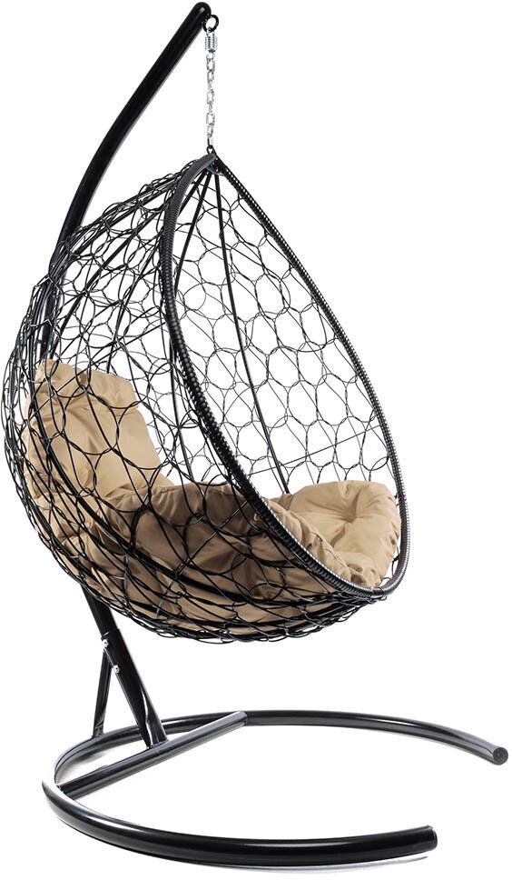 Подвесное кресло m-group капля ротанг чёрное, бежевая подушка