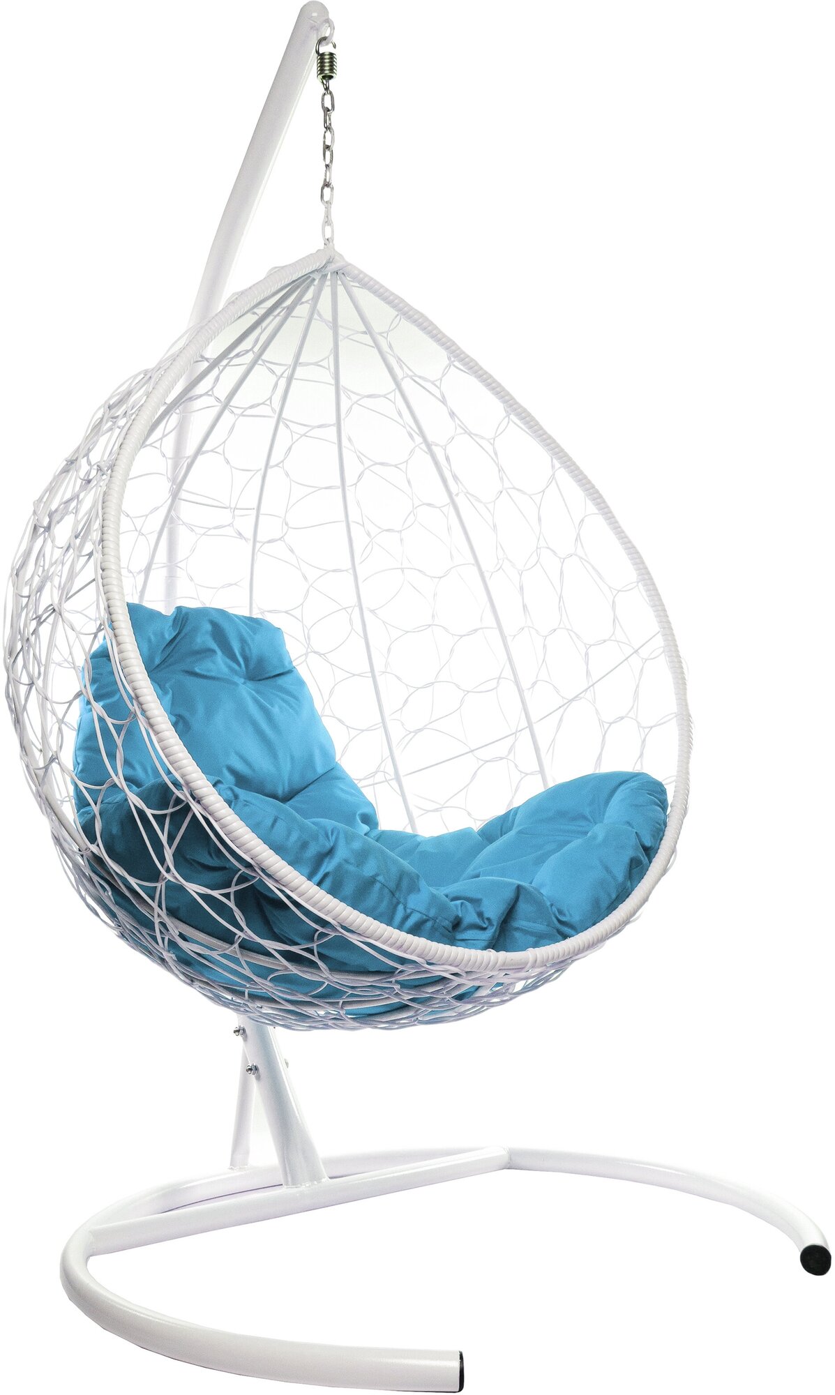 Подвесное кресло капля ротанг белое (без стойки), голубая подушка