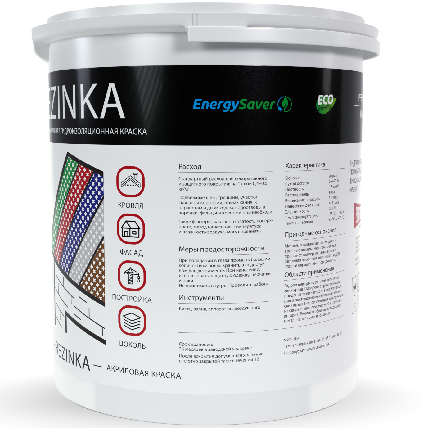 Краска резиновая REZINKA универсальная акриловая эластичная для фасадов, интерьера, мебели, кровли, цоколей, моющаяся, быстросохнущая, без запаха, матовая 2,5л RAL 9003 сигнально-белый