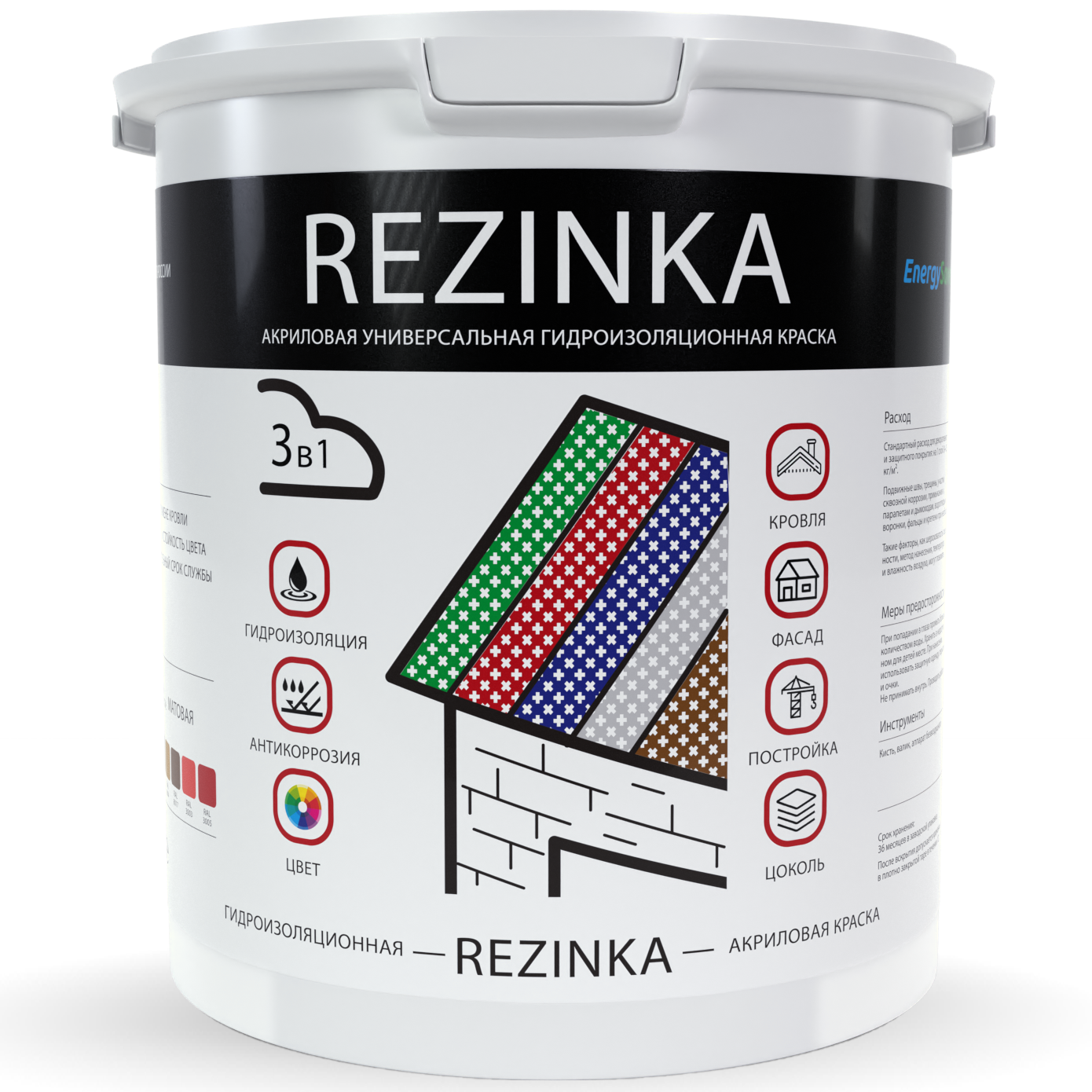 Краска резиновая REZINKA универсальная акриловая эластичная для фасадов, интерьера, мебели, кровли, цоколей, моющаяся, быстросохнущая, без запаха, матовая 5л RAL 7016 антрацитово-серый 3 839 ₽ Подробнее