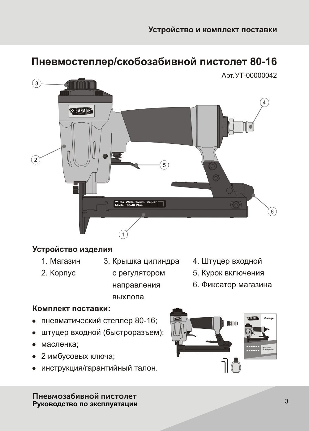 Строительный степлер Пневмопистолет скобозабивной GARAGE 80-16