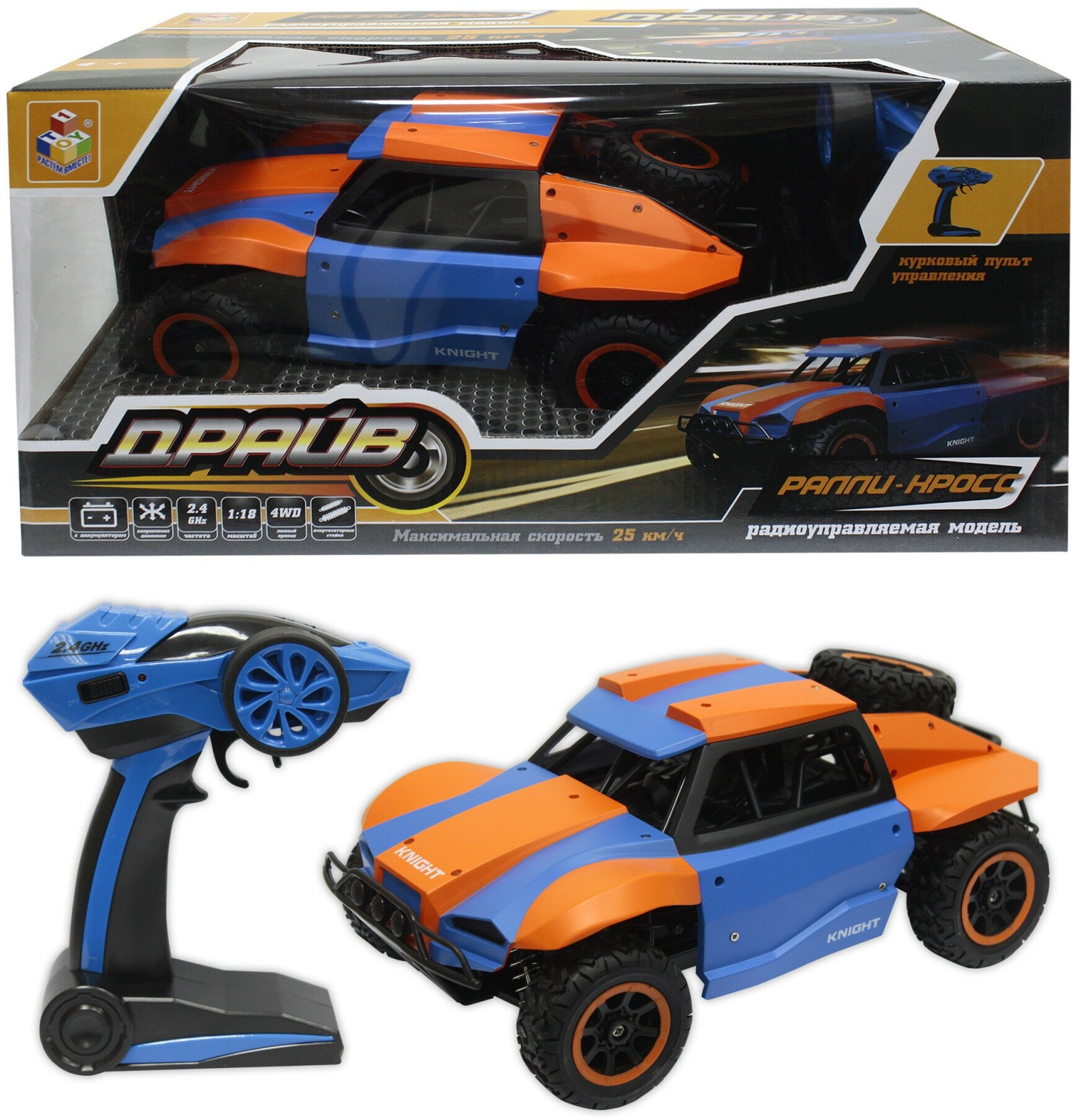 Раллийная машина 1TOY 1 TOY на радиоуправлении Драйв, 2,4GHz, 4WD, масштаб 1:18, скорость до 25км/ч, голубо-оранжевый 3 380 ₽ Подробнее