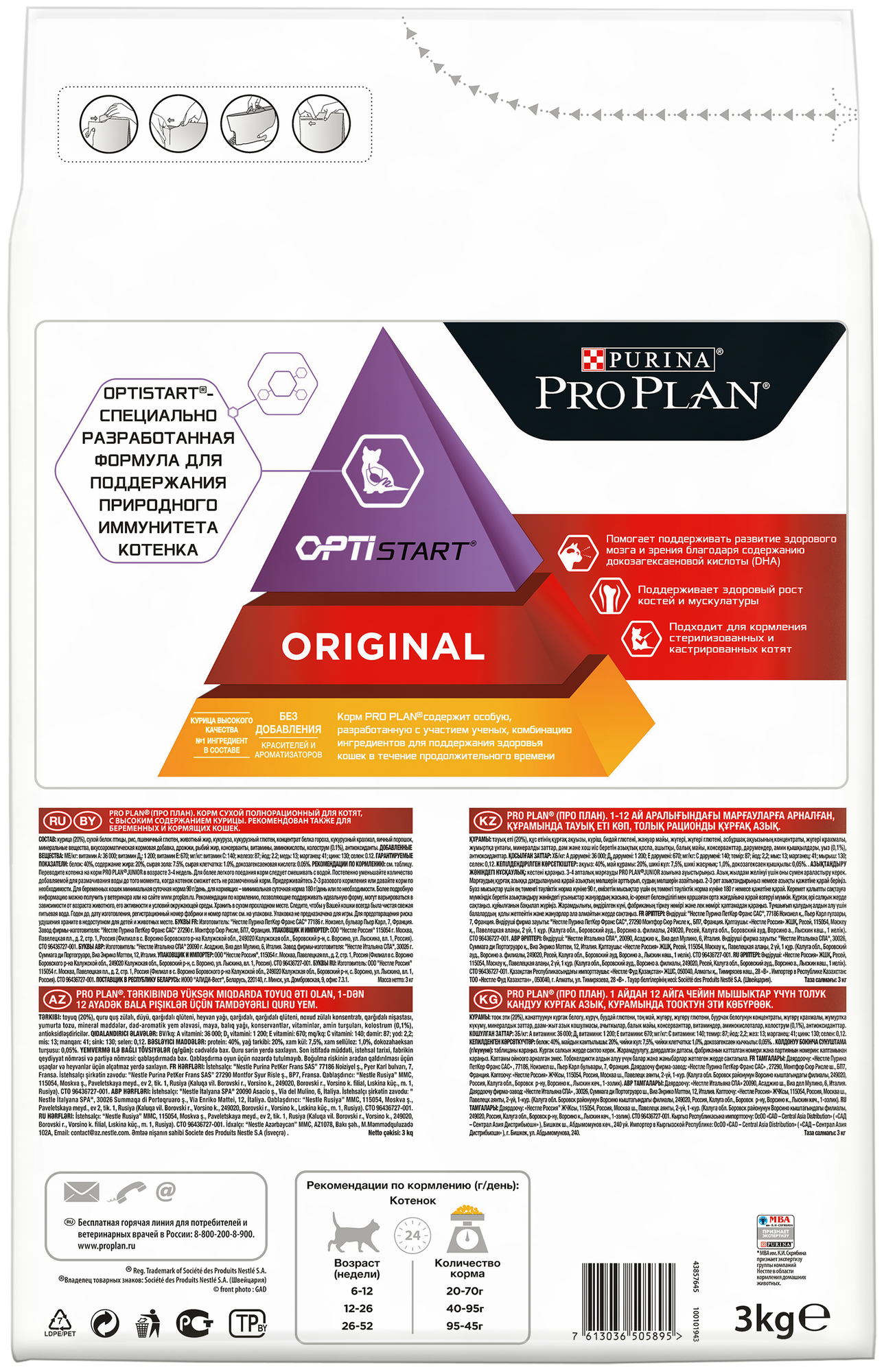 Лучшие цены. Котенку необходимо много калорий, высокобелковое питание и определенная комбинация витаминов и минералов для формирования мускулатуры, роста костей и развития мозга. Все это он раньше получал с молоком матери, поэтому корм для котят должен предоставить малышу все питательные вещества, в которых он нуждается. Эксперты PRO PLAN разработали сухие корма для котят Original Kitten со специальной формулов для здорового развития котенка в течение первого года жизни. Магазины в вашем городе.