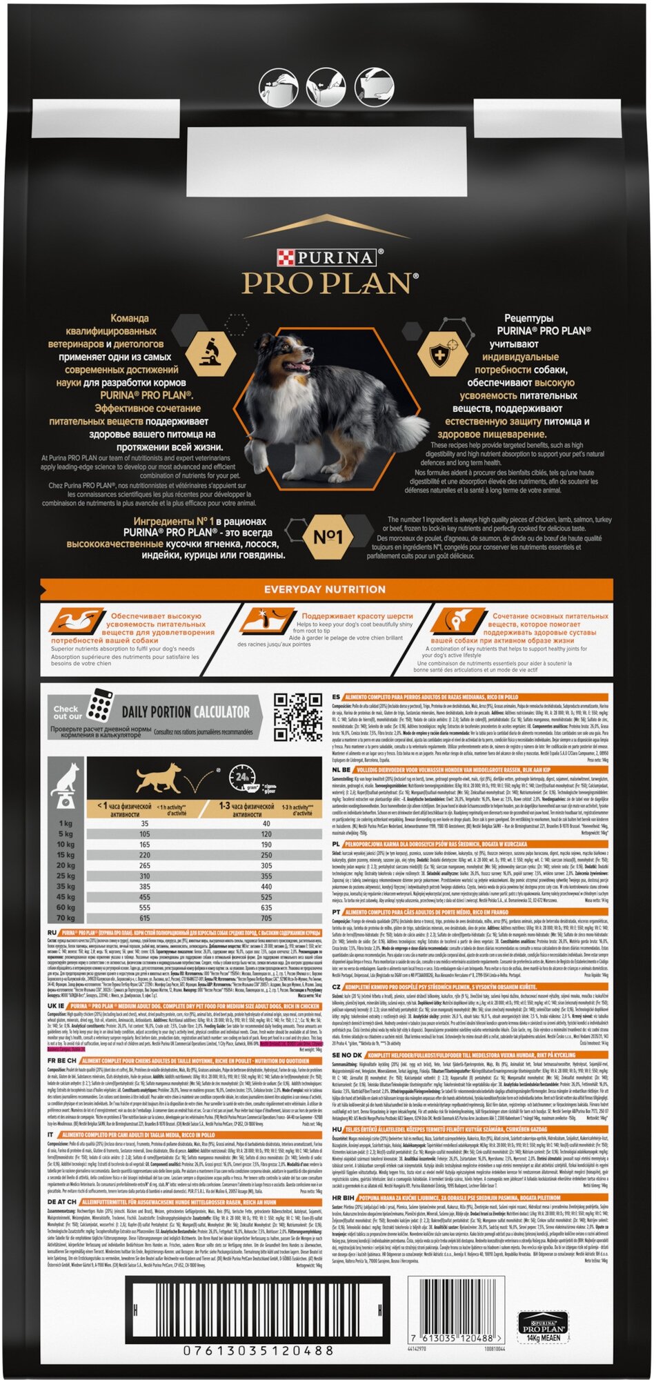 Сухой корм PRO PLAN® для взрослых собак средних пород, с высоким содержанием курицы, EVERYDAY NUTRITION,14 кг