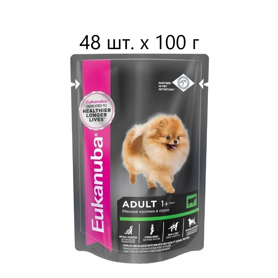 Влажный корм (Паучи) Эукануба для взрослых собак с Говядиной в соусе (цена за упаковку) 100г x 24шт