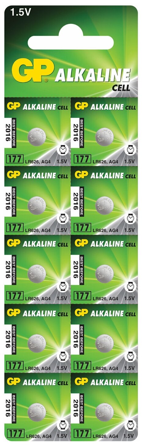 Батарейка GP Alkaline 177 (G4, LR626), алкалиновая, 1 шт., в блистере (отрывной блок), 177-2CY, 4891199026690 - 10 шт.