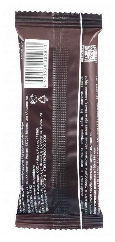 Лучшие цены. Гематоген для собак Титбит – вкусно и полезно Производитель: Россия, ООО «Рубис» Владельцы собак всегда рады угостить питомца чем-нибудь вкусненьким. Но хочется, чтобы лакомство было не просто вкусным для собаки, но еще и полезным. Одно из таких полезных лакомств – гематоген для собак. Этот продукт похож на гематоген для людей, но все же его рецептура несколько отличается. В частности, в составе гематогена TiTBiT для собак нет сахара, зато есть мясо и субпродукты. Магазины в вашем городе.