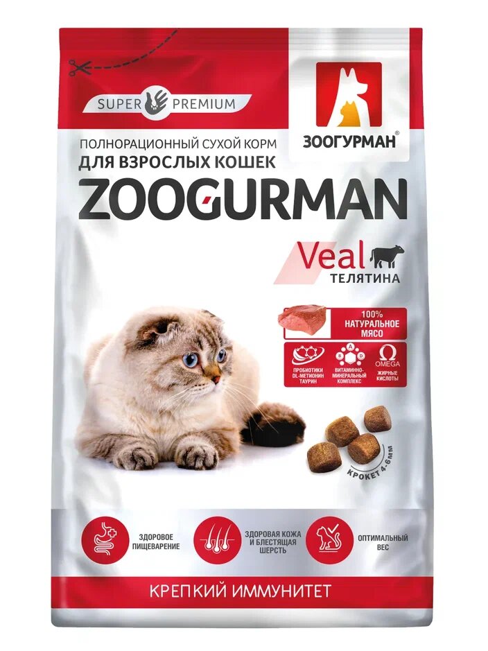Лучшие цены. Полнорационный сухой корм для взрослых кошек Zoogurman Supreme, Телятина Крепкий иммунитет - Здоровое пищеварение - Здоровая кожа и блестящая шерсть - Оптимальный вес. Магазины в вашем городе.