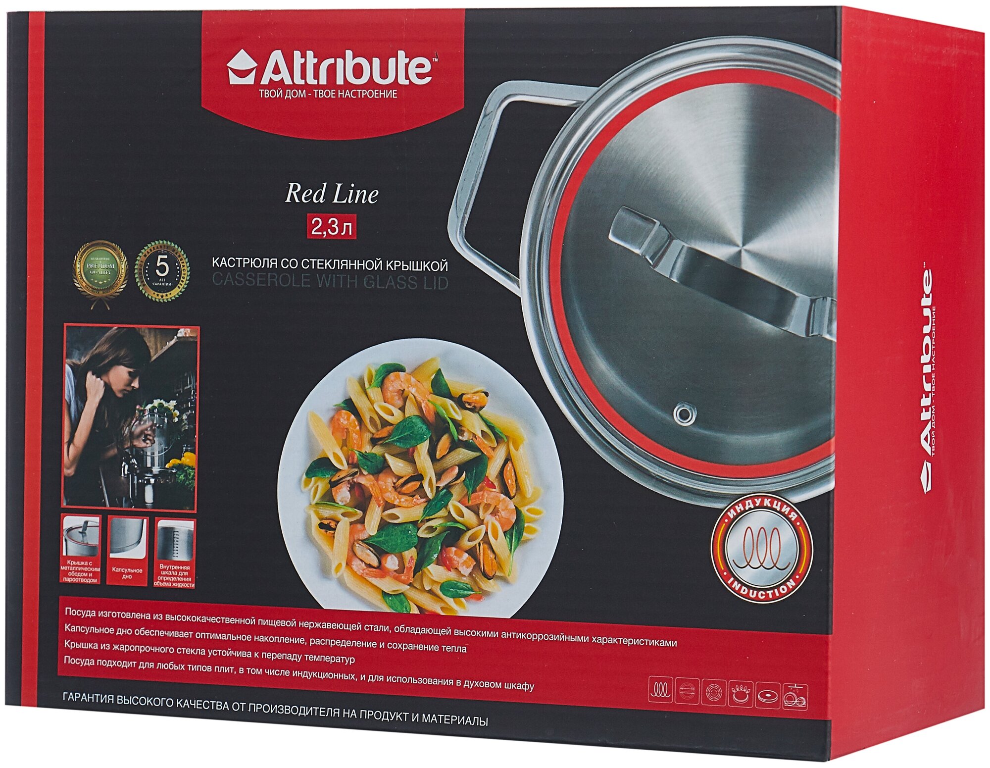 Кастрюля attribute red line 3,3л 20см нерж.сталь стеклянная крышка индукция