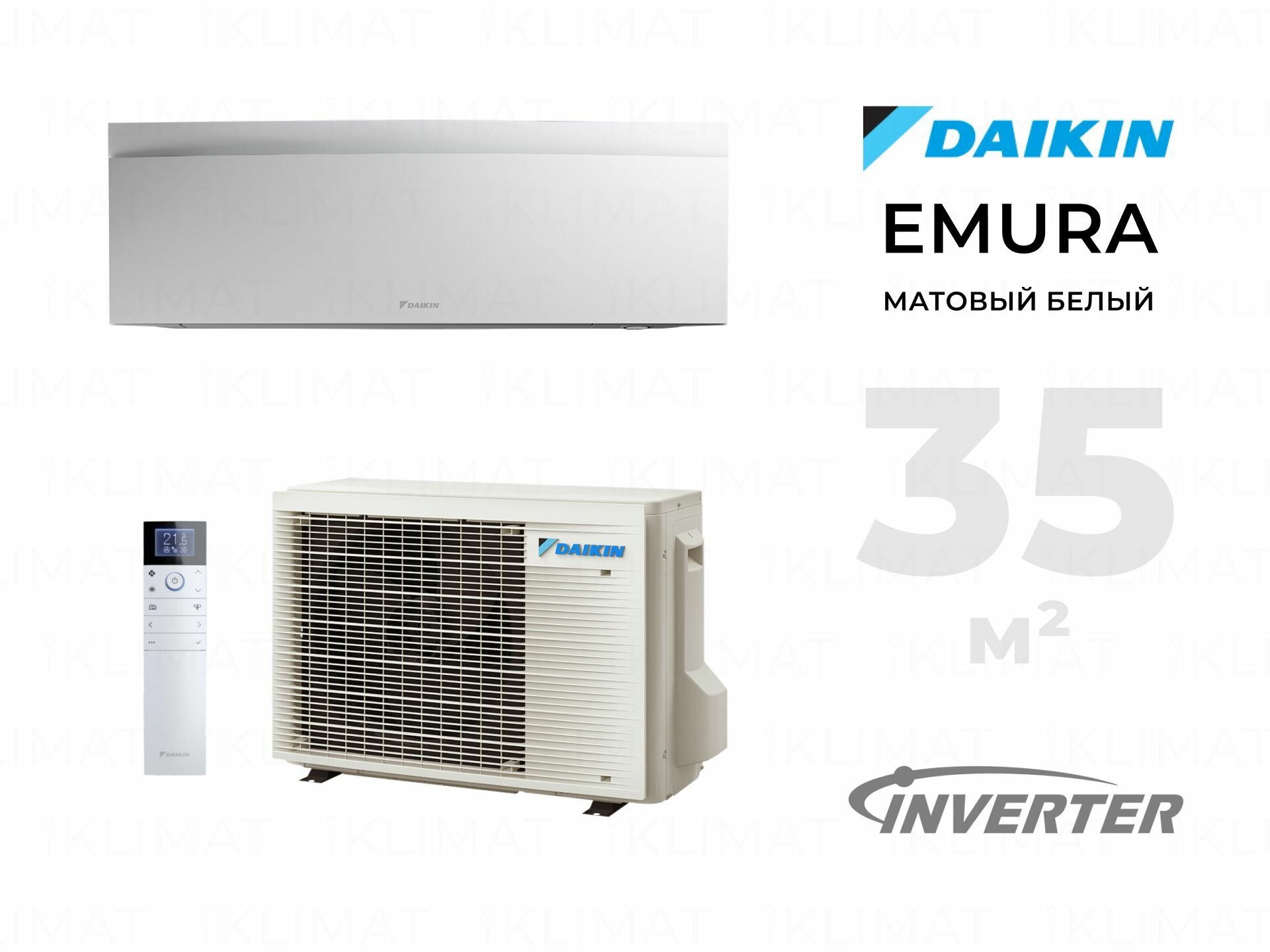 Кондиционеры Настенная сплит-система инвертор Daikin Emura FTXJ35AW/RXJ35A, для помещений до 35 кв.м.