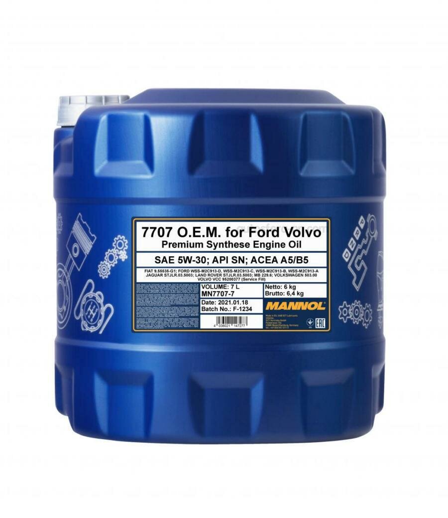 Масло Mannol Energy Formula Fr 5w30 Синт. 7707 For Ford Volvo (7 Л) Api Sn, Acea A5/B5, Ilsac Gf-4; Ford Wss-M2c913-D, Opel G...