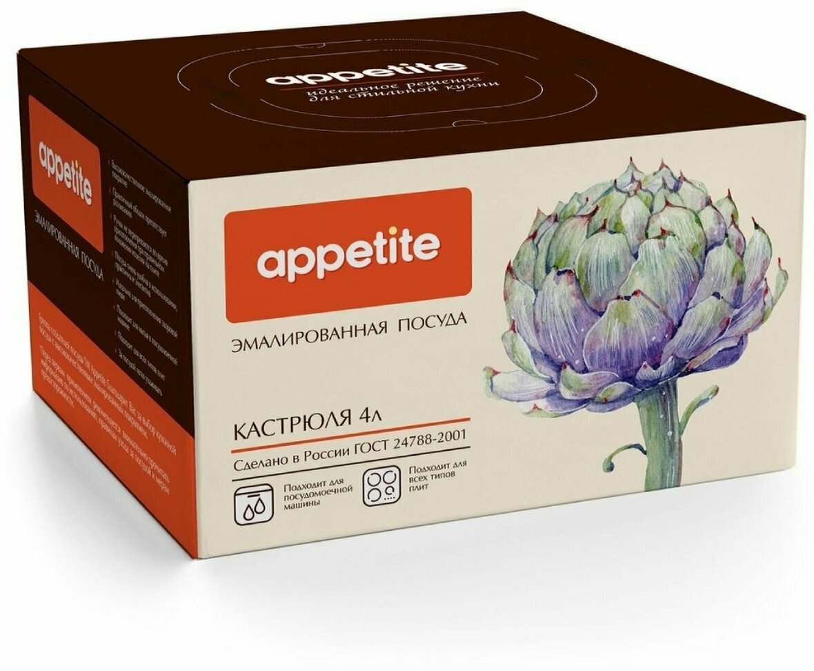Кастрюля эмалированная Appetite Maison, с крышкой, 4 л
