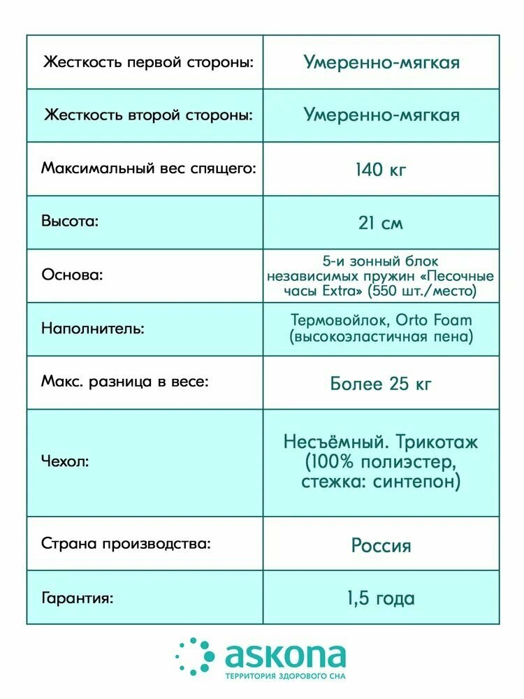 Матрас Askona Terapia New Pulse 140х200, стандартный 16 047 ₽ Подробнее