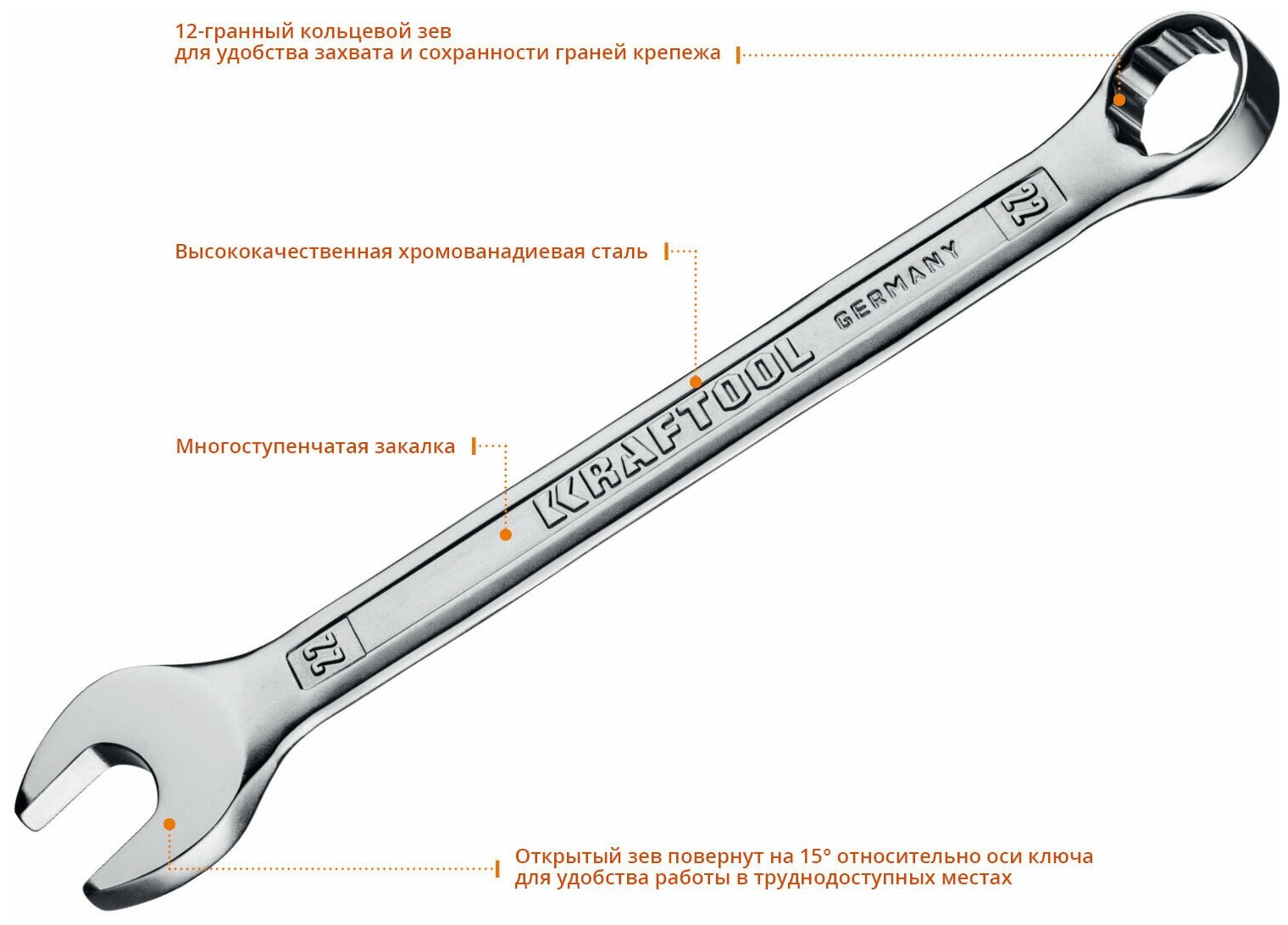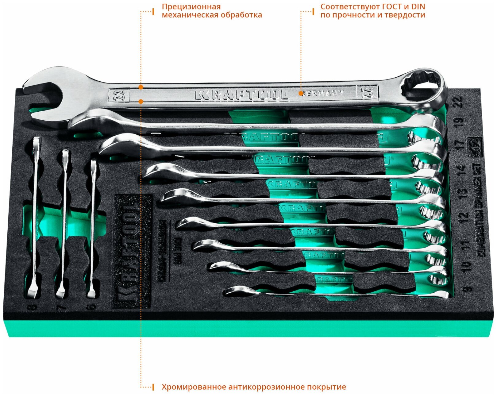 Набор комбинированных гаечных ключей KRAFTOOL 12 шт, 6 - 22 мм