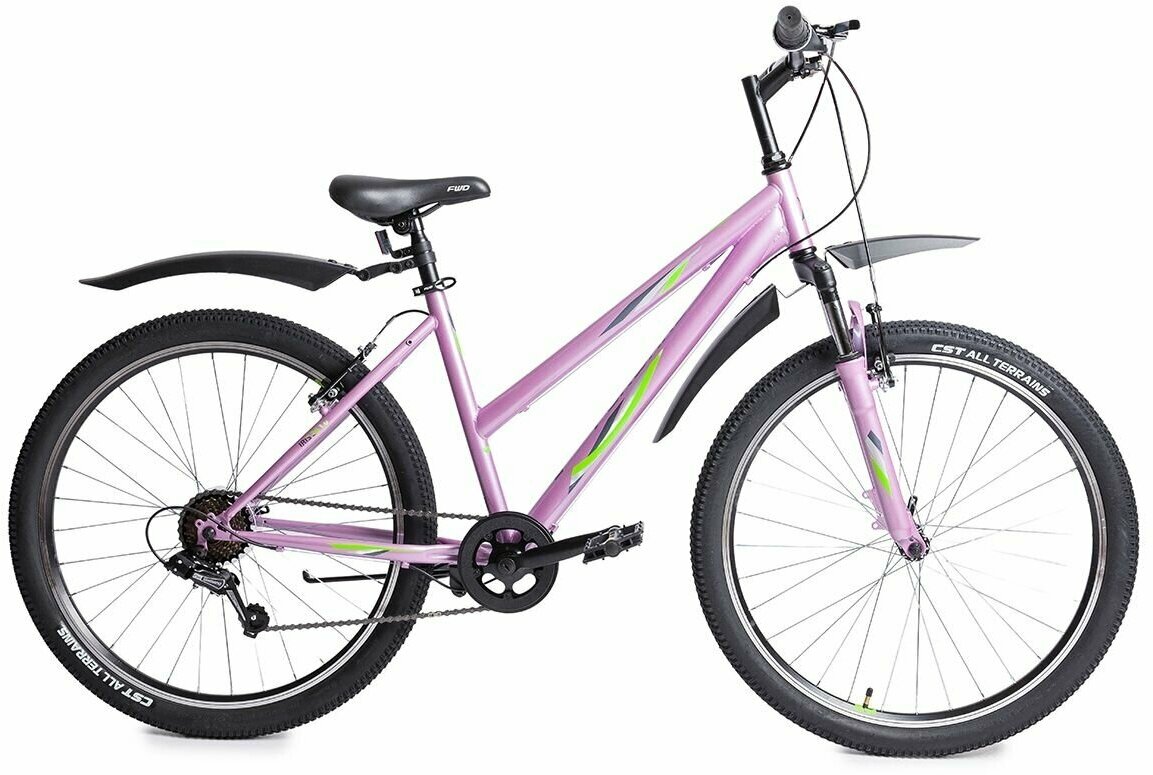 Велосипед FORWARD IRIS 26 1.0 (26" 6 ск. рост. 17") 2022, сиреневый/зеленый, RBK22FW26736